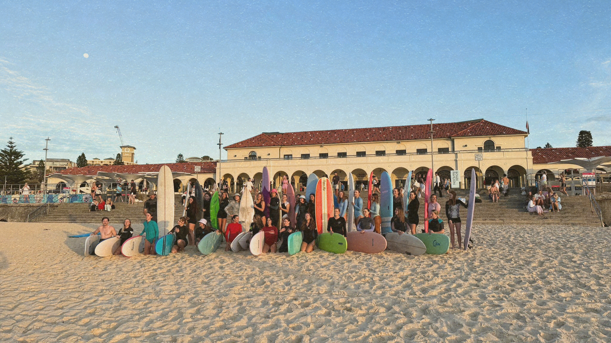 Every week at 6:30am, Bondi Surf Girls meets in front of the Bondi Pavilion for our signature women’s sunrise surf session - a consistent, welcoming space designed to build confidence in the water and connection beyond it.